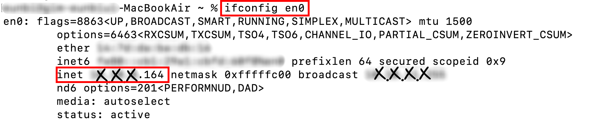 그래서 ifconfig en0 을 입력하여 정보 확인