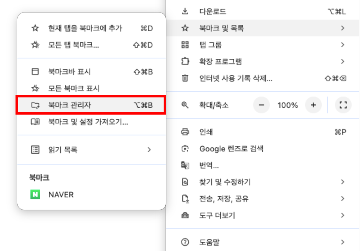 2. 북마크 관리자 선택 (단축키로도 접근 가능)